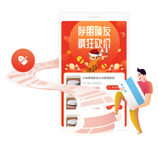 基于微信社交开展拼团,依靠朋友圈的飞速传播,提升品牌影响力,促进消费者分享带来商品销量,商城订单成倍提升,增加收益。