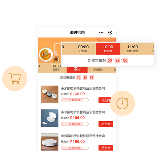 日常营销爆款商品,限时限量秒杀,制造紧张氛围,刺激客户产生强烈购买欲望,带来流量的高转化。